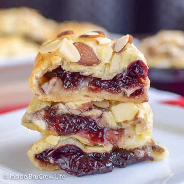 Cherry Almond Brie Bites – crescent rolls filled with cherry preserves and brie cheese makes an easy and delicious appetizer. Great game day appetizer.