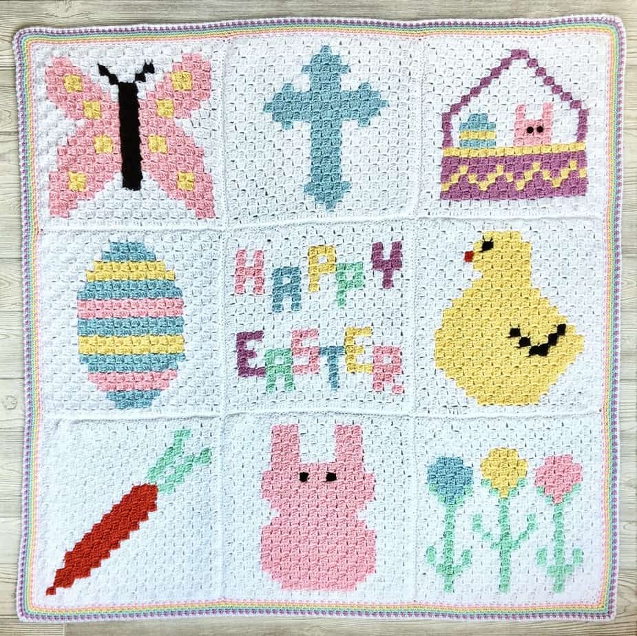 Free Crochet Pattern | The Easter Blanket C2C Blanket CAL is now complete! Part 10 details how to join your squares as well as complete the border! Video instructions included!